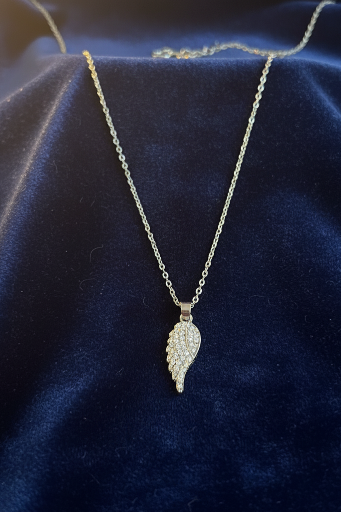 The Diamante Angel Wing Necklace is a classic style of necklace, it adds a little sparkle and shimmer to your outfit. Also makes for a perfect gift for a love one who believes Angels are always with us.
